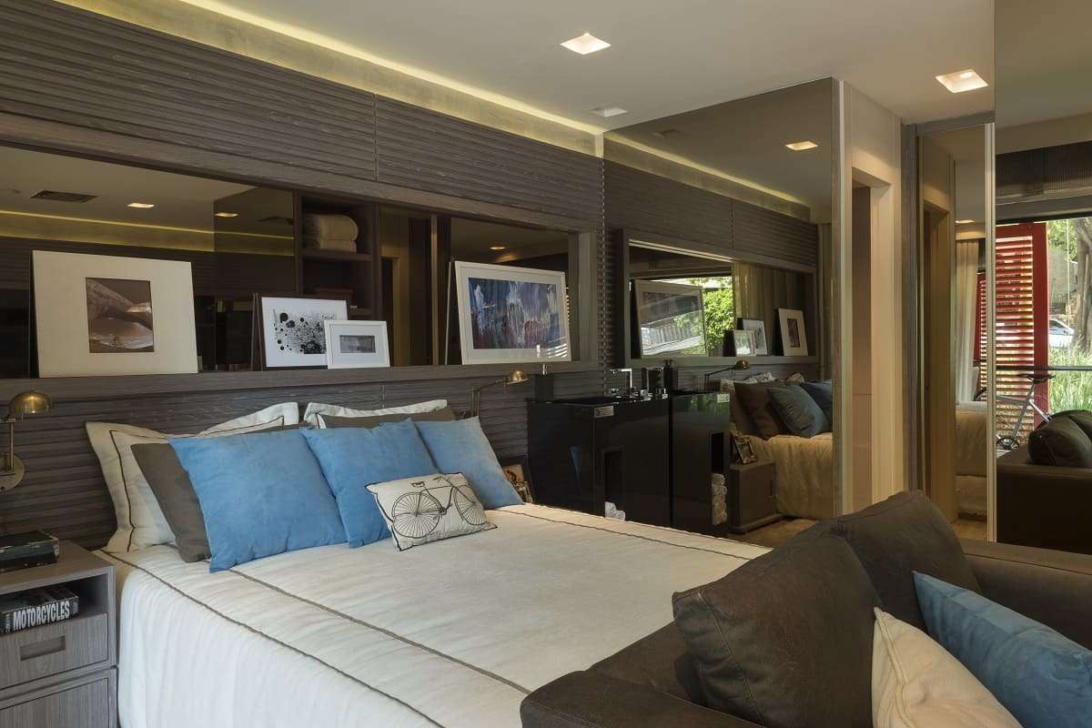 • Um dos grandes truques é a utilização de espelhos. Eles dão a sensação amplitude, além de leveza e suavidade para um ambiente pequeno.