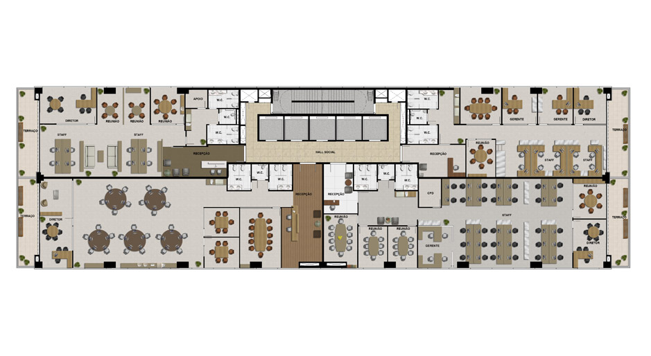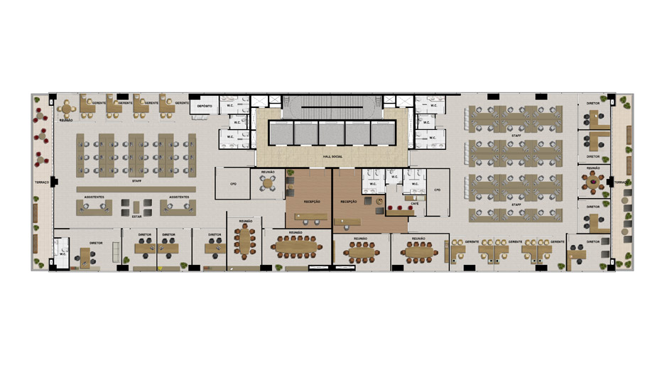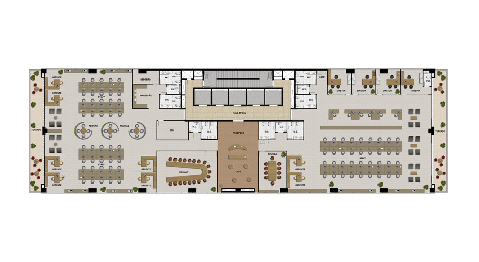 Planta Artística do Pavimento Tipo com Sugestão de Ocupação para uma Empresa