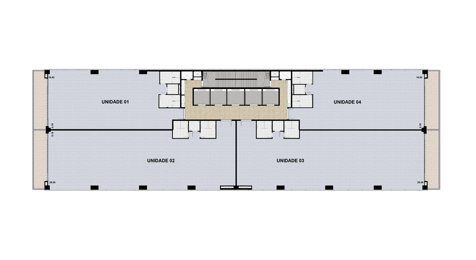 Planta Artística do Pavimento Tipo com Sugestão de Ocupação para Quatro Empresas